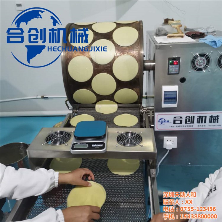 式榴莲千层蛋皮机带叠皮机整理现场安装调试一次成功。